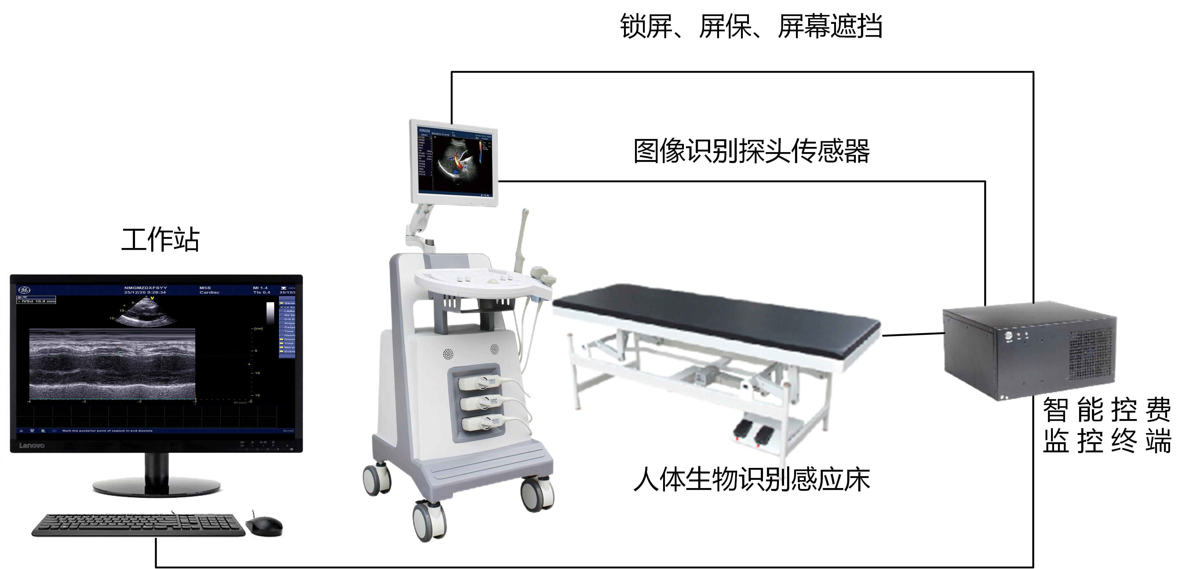 控費(fèi)系統(tǒng)通過(guò)圖像識(shí)別分析技術(shù),來(lái)判斷超聲設(shè)備所做的檢查部位信息,同時(shí)控費(fèi)系統(tǒng)將獲取到的檢查數(shù)據(jù)與HIS、PACS、體檢系統(tǒng)檢查申請(qǐng)信息/交費(fèi)信息對(duì)比分析,如識(shí)別在做的檢查“無(wú)交費(fèi)信息、無(wú)檢查申請(qǐng)信息”的情況,控費(fèi)系統(tǒng)智能控制終端,將對(duì)被控設(shè)備進(jìn)行屏幕控制,阻止繼續(xù)做檢查。